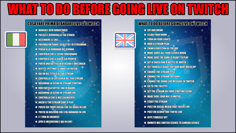 Lista di controllo per la trasmissione in diretta: in questo modo non dimenticherai nulla prima di iniziare il tuo streaming! Going Live Checklist - This way you won't forget anything before starting your stream!